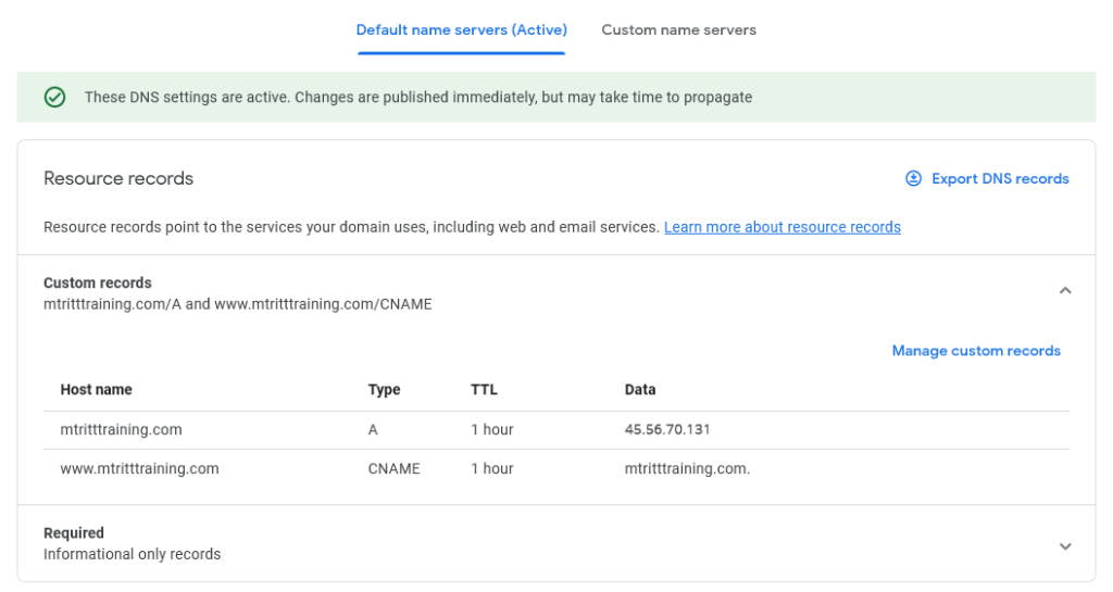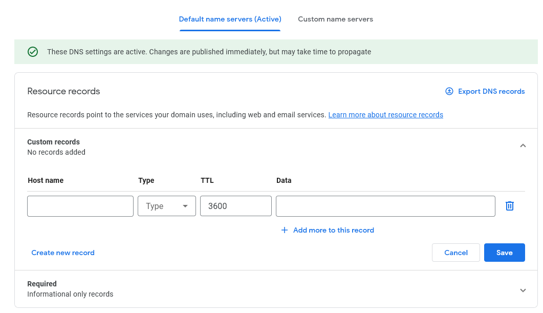 4. At the top of this page you will see a “Resource records” section. and some fields where you can enter in some info.